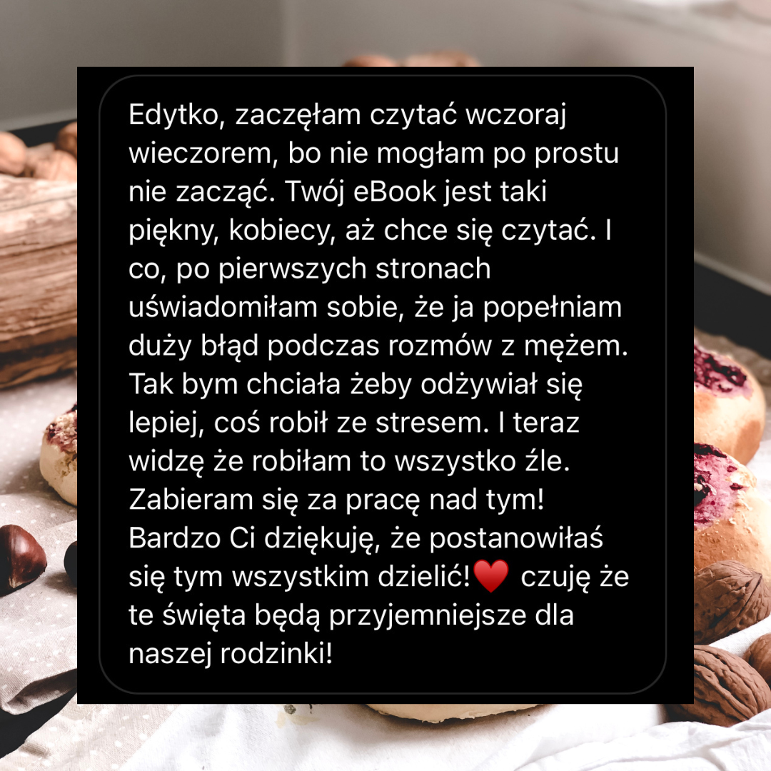 Każdy rozdział e-booka Projekt Zdrowie | Rodzina da Ci nie tylko wiedzę psychologiczną, ale też konkretne wskazówki do wykorzystania w praktyce. Zrób, co się da, aby je przetestować. Jeśli możesz, zaproś bliską osobę do rozmowy. Jeśli spotykasz się z oporem, idź za wskazówkami zawartymi w książce i nie poddawaj się. Życzliwy wpływ na bliskich przynosi wspaniałe efekty.