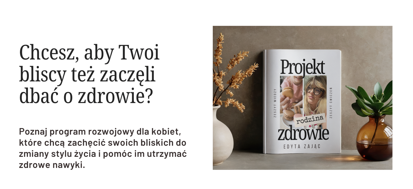 Oczywiście, bez przekraczania granic i wywoływania kompleksów u swoich najbliższych. W e-booku Projekt Zdrowie | Rodzina pokazuję Ci, jak krok po kroku wywierać życzliwy wpływ na ludzi, na których najbardziej Ci zależy. Stań się dla swoich bliskich inspiracją do zmian i najlepszą możliwą towarzyszką na tej trudnej drodze.